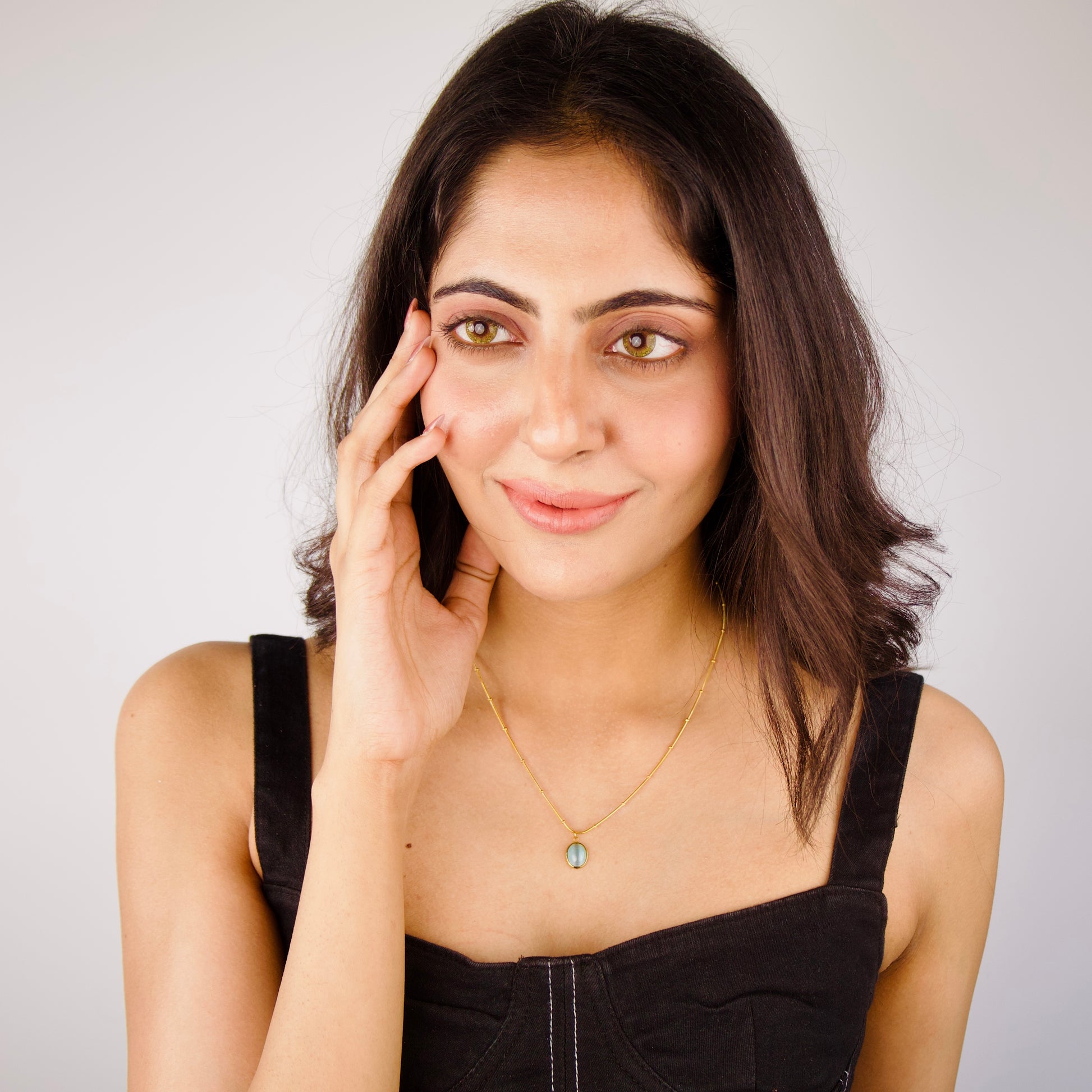 This Aqua Pendant Necklace features an 18KT gold plating that is skin-safe and waterproof, with a length of 47.3 cm for a comfortable fit.