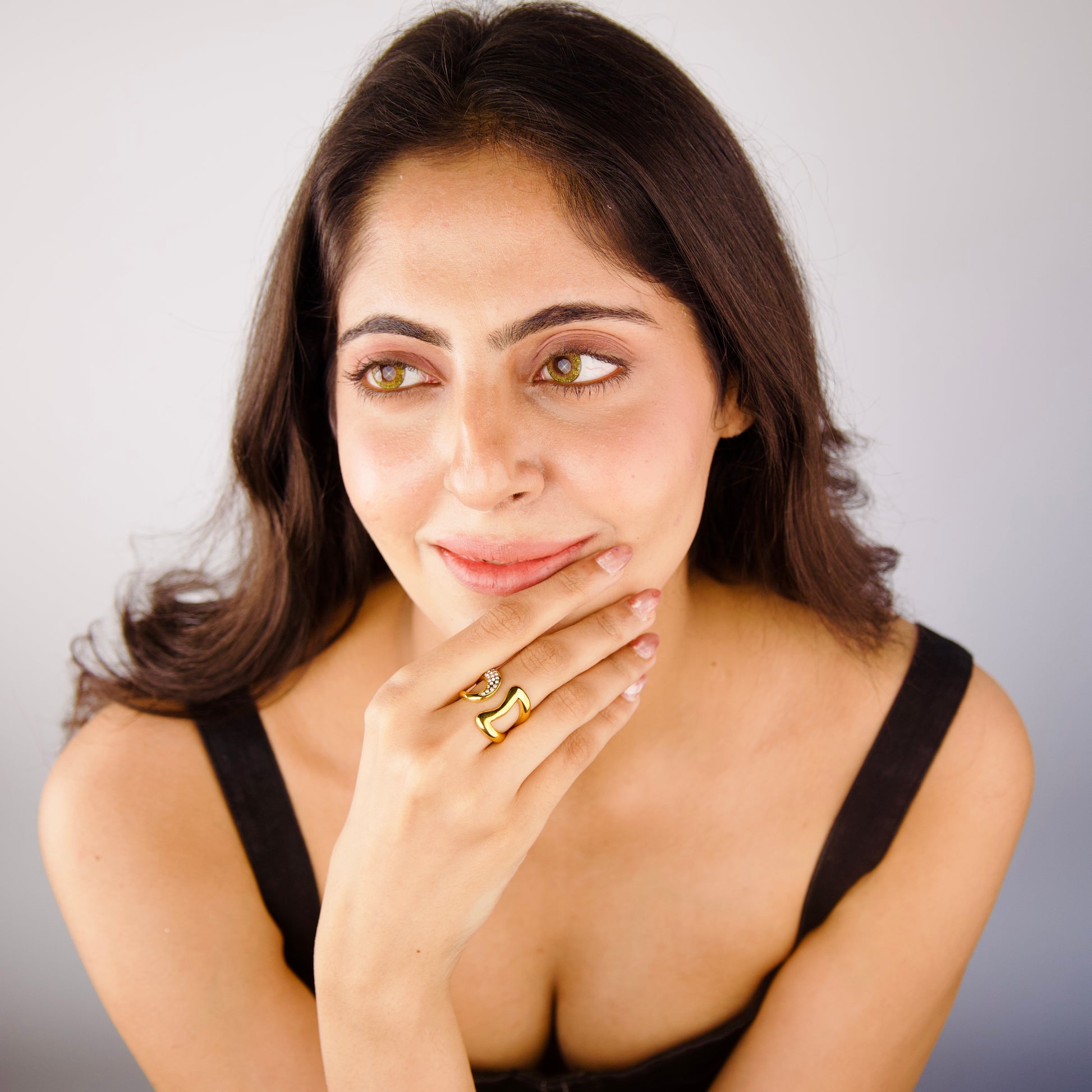 This Big Mood Ring features 18KT gold plating, is skin-safe, waterproof, and has a fixed size for reliable wear.