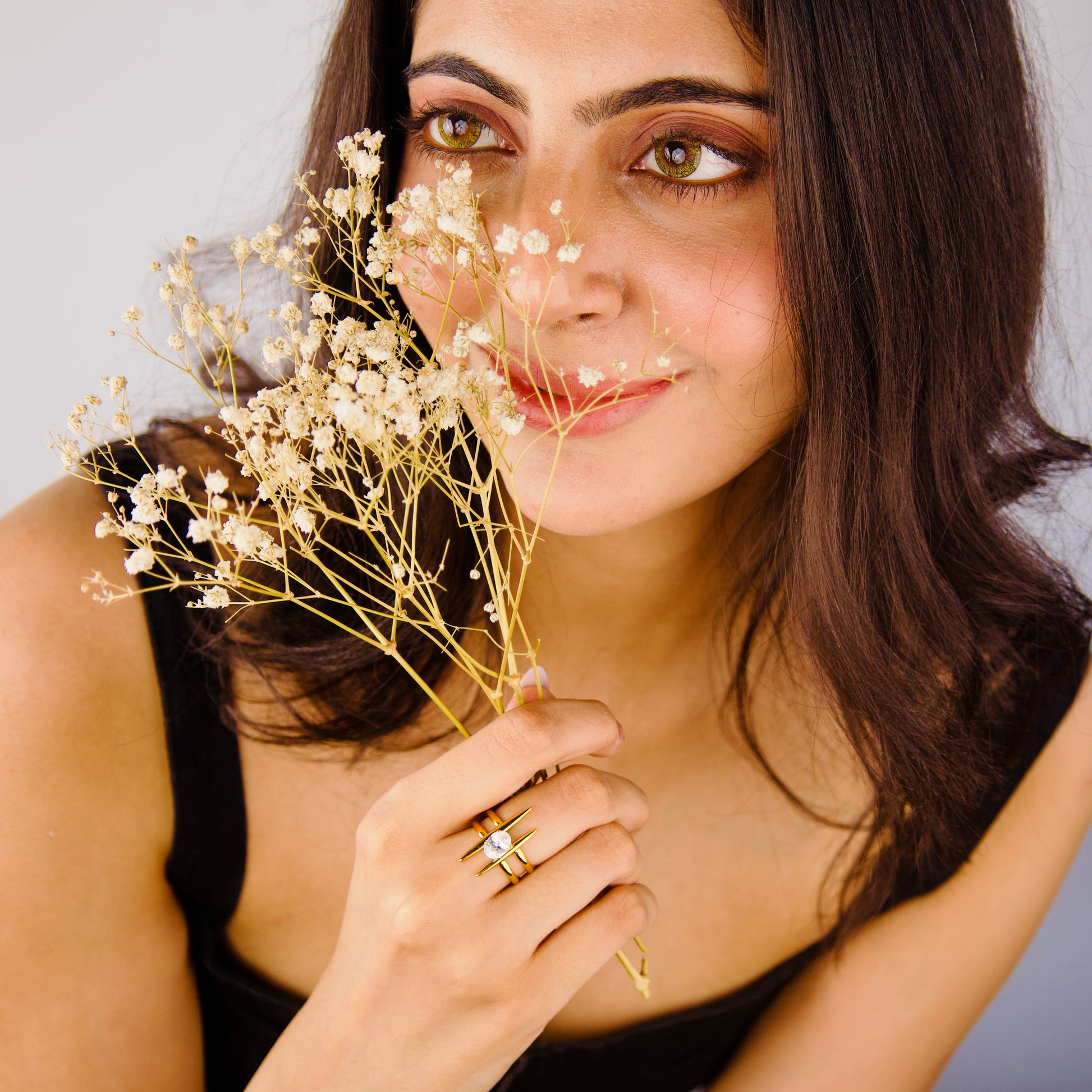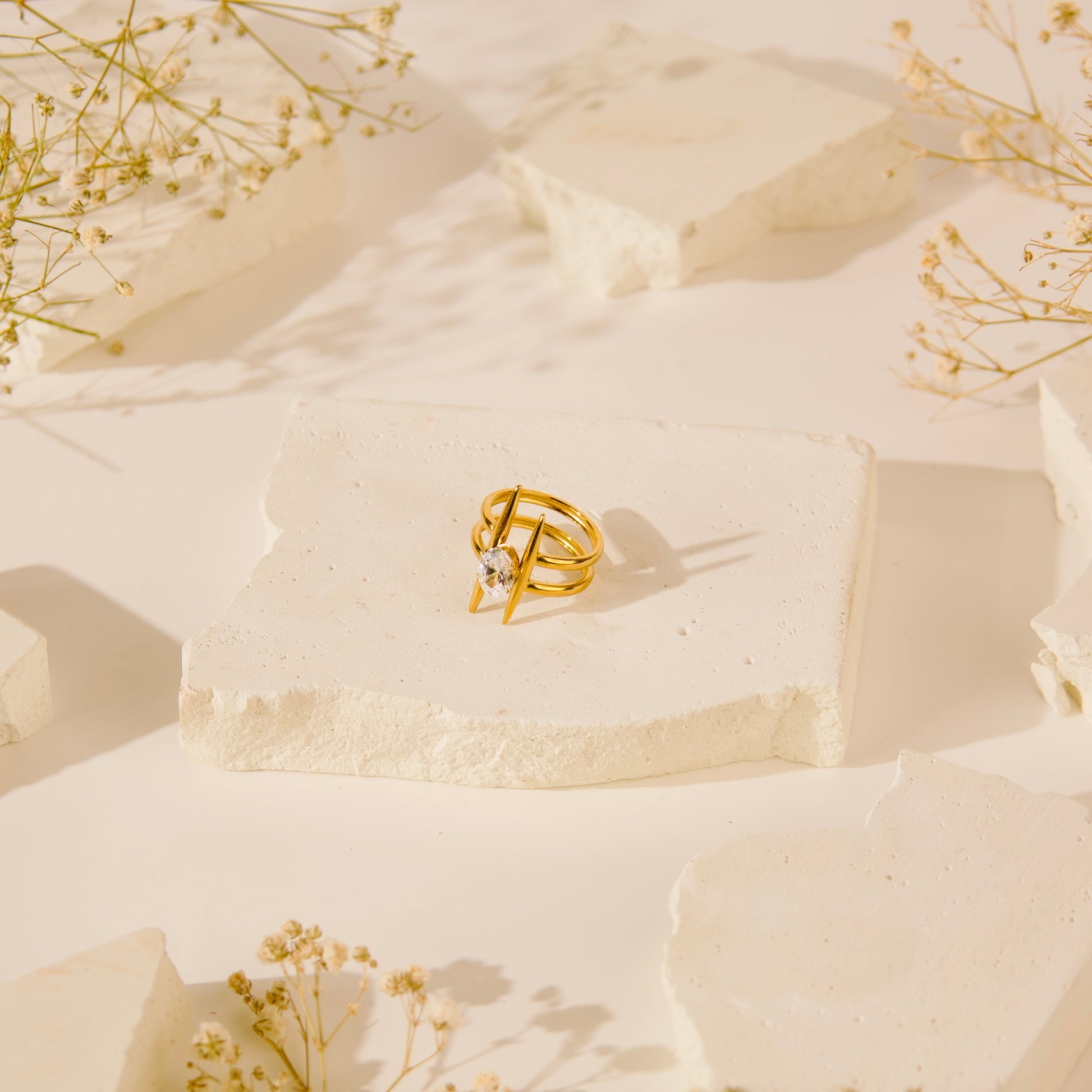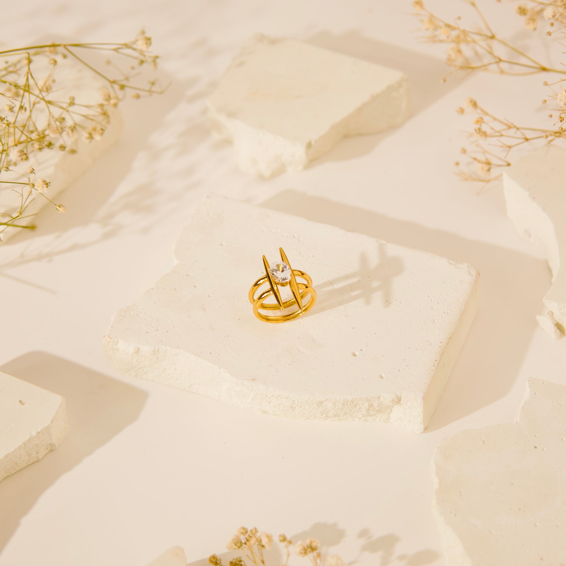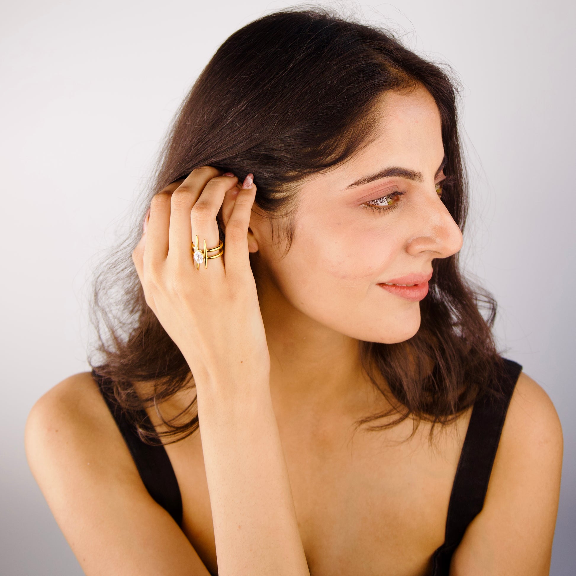 Crafted with 18KT gold plating, this adjustable ring is designed to be skin-friendly and resistant to water, ensuring durability and comfort.