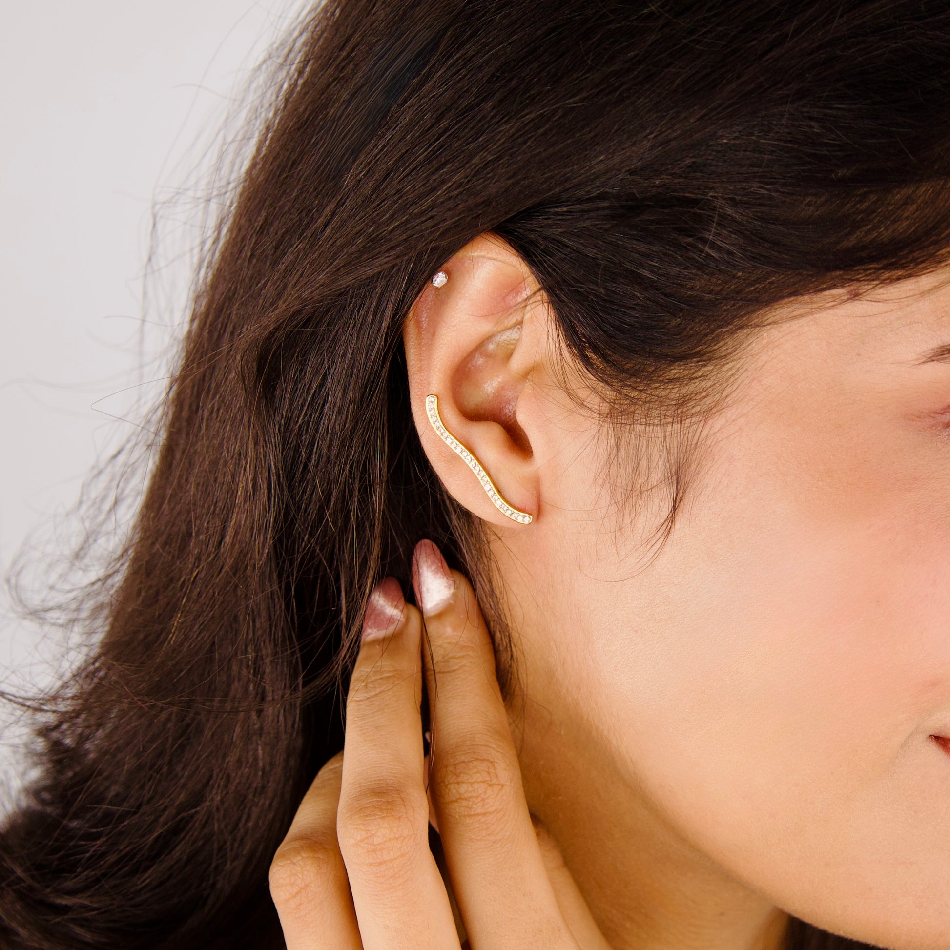 These line earrings feature an 18KT gold plating, ensuring skin safety and reliable waterproof durability.