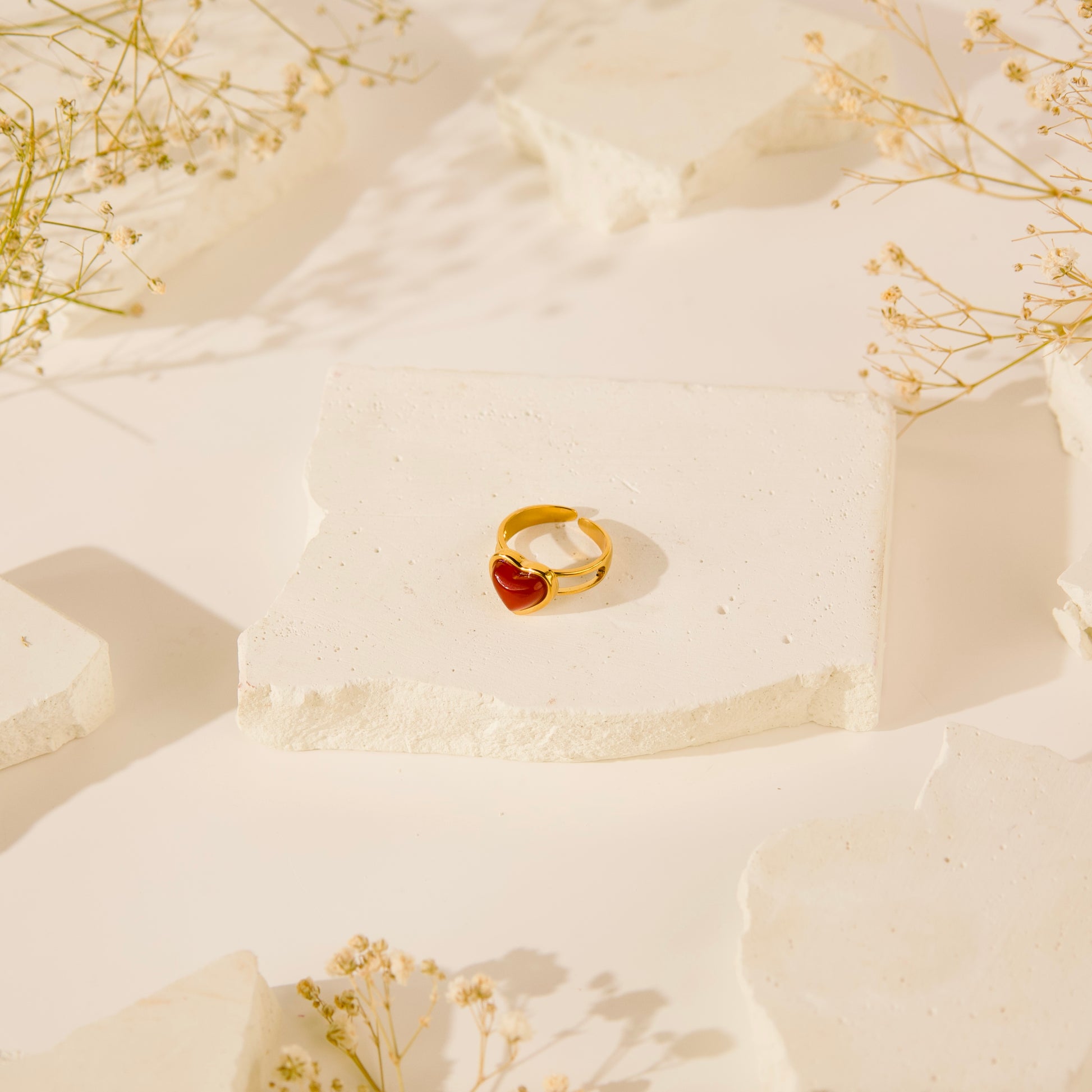 This adjustable ring features an 18KT gold plating, designed to be skin-friendly and resistant to water, ensuring durability and comfort.