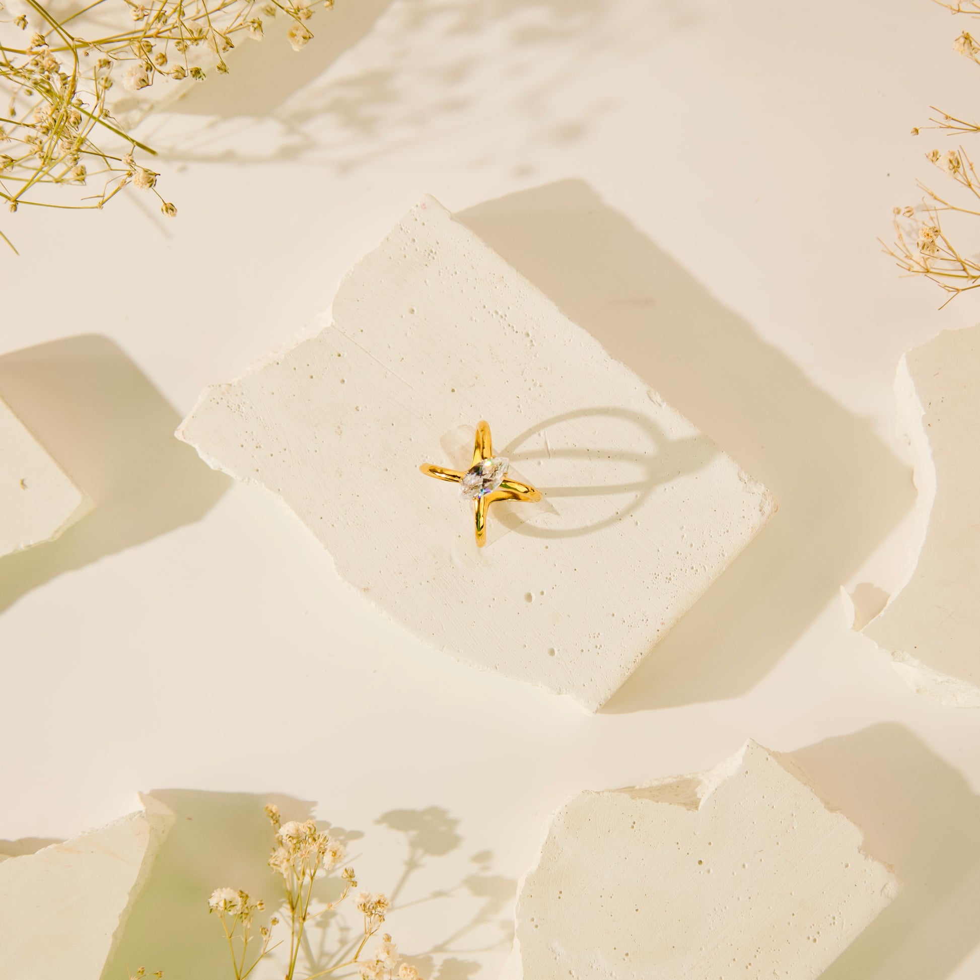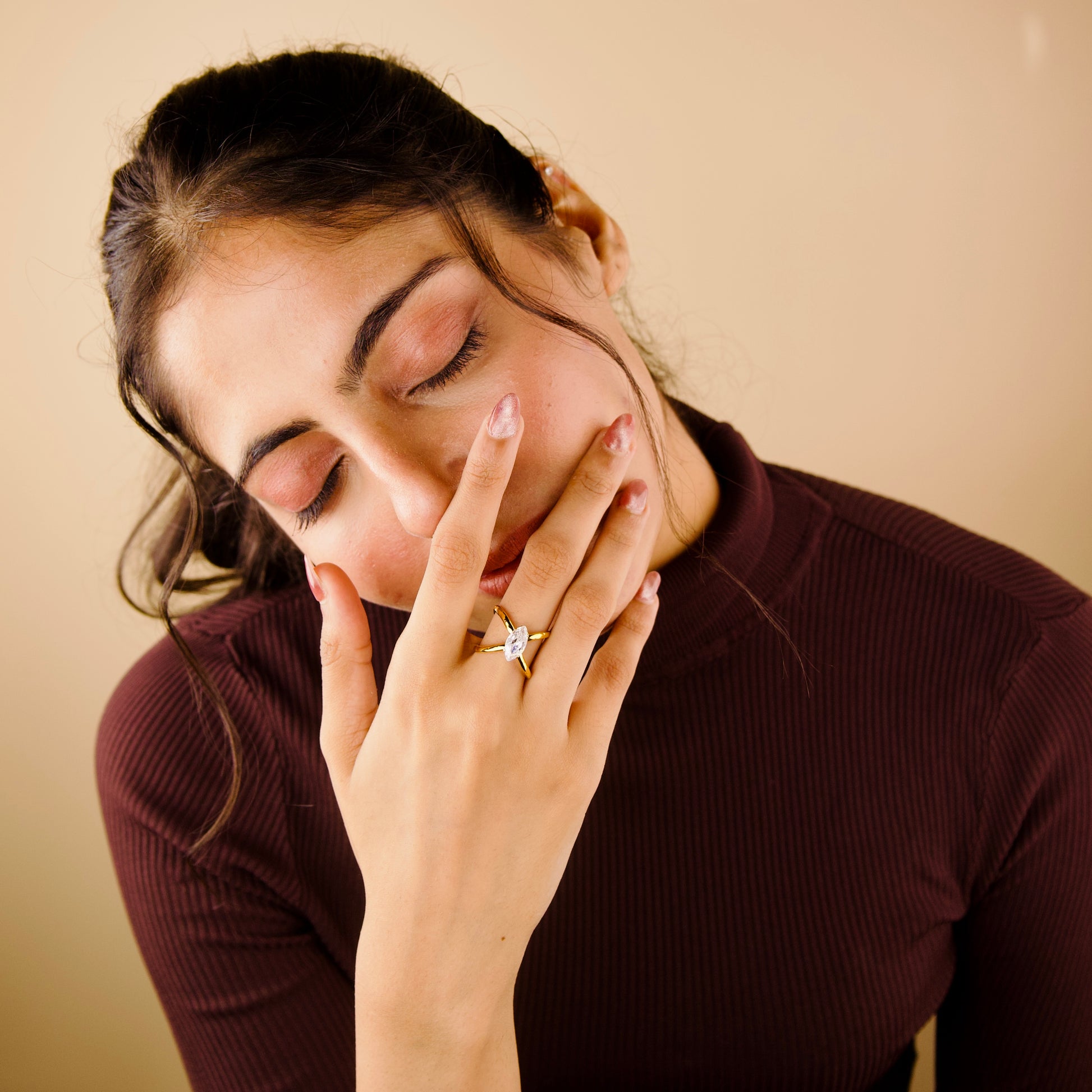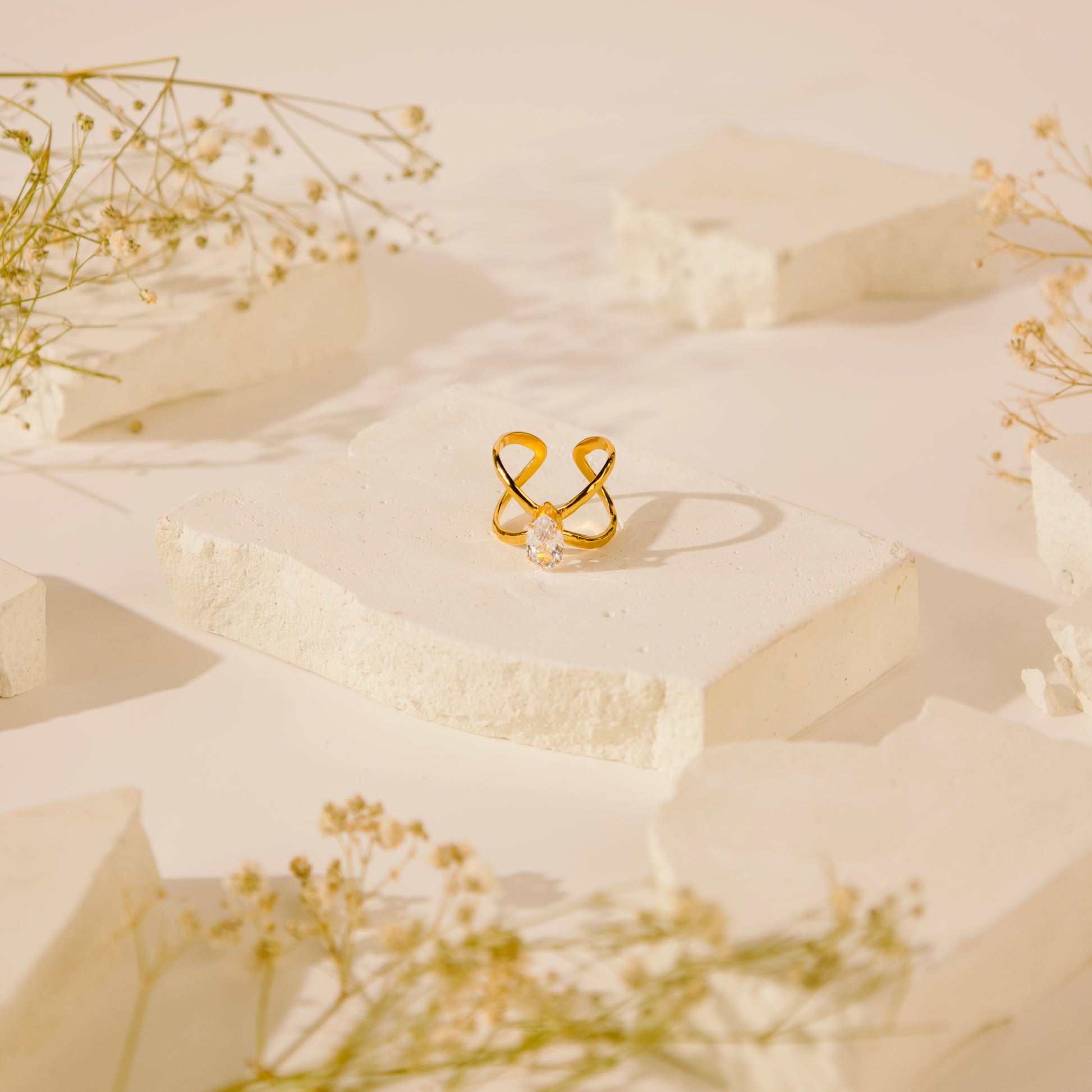 Crafted with 18KT gold plating, this adjustable ring is designed to be waterproof and safe for all skin types.