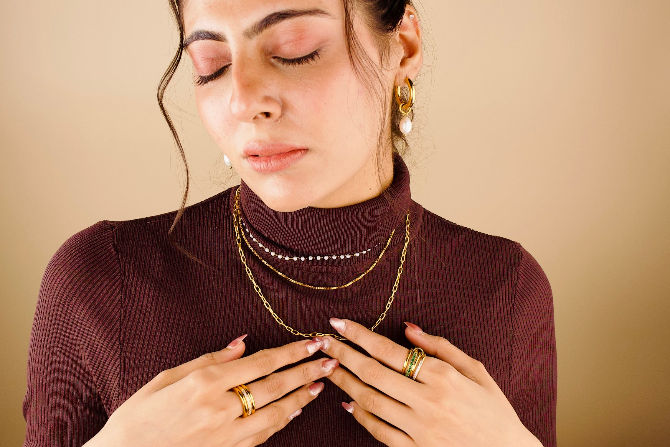 Our pieces are made for real life: 18kt gold plated, water-resistant, skin-friendly, and effortlessly trendy. From Monday meetings to Friday night plans, dance lessons you’ve finally signed up for, a solo date at your favourite café, or that spontaneous adventure trip—you’ll have the perfect jewellery to match the moment.